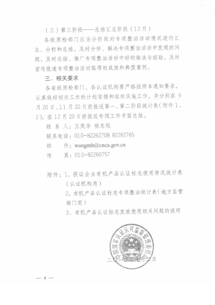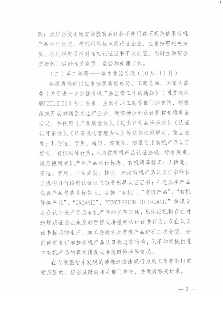 國家認(rèn)監(jiān)委:關(guān)于開展有機(jī)認(rèn)證標(biāo)志專項(xiàng)整治活動(dòng)的通知